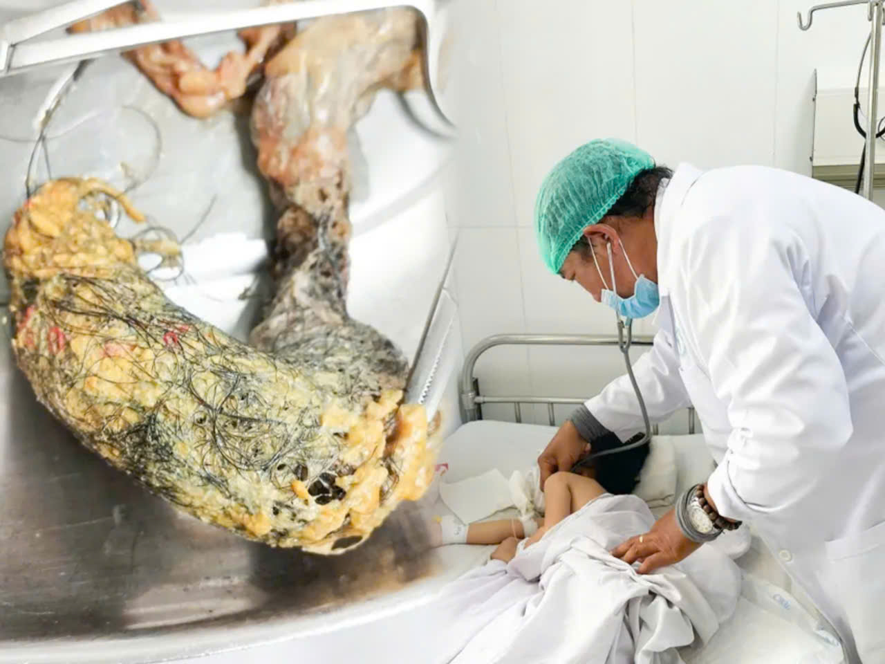Các bác sĩ tại Bệnh viện Chuyên khoa Sản Nhi Sóc Trăng vừa xử lý thành công một ca bệnh hiếm gặp: bé gái 4 tuổi nhập viện trong tình trạng đau bụng dữ dội, nôn ói liên tục và suy kiệt cơ thể. Sau khi thăm khám và thực hiện cận lâm sàng, bác sĩ phát hiện nguyên nhân không ngờ – một búi tóc dài khoảng 12 cm nằm trong ruột gây tắc nghẽn.