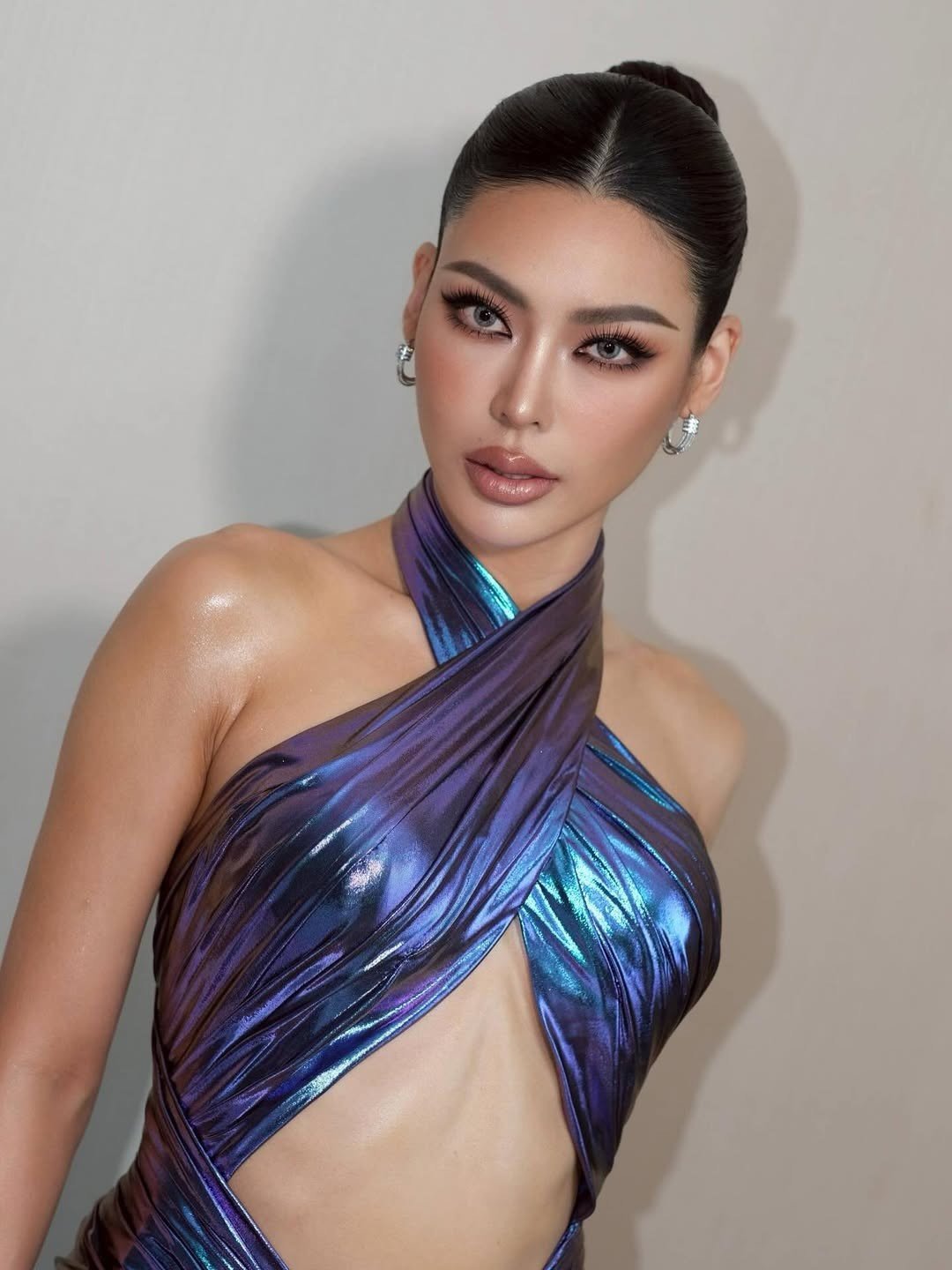 Thái Lan – Sarunrat Puagpipat: Váy sequin xanh rực rỡ với chi tiết hở bạo, gương mặt sắc sảo cùng chiều cao 1m70.