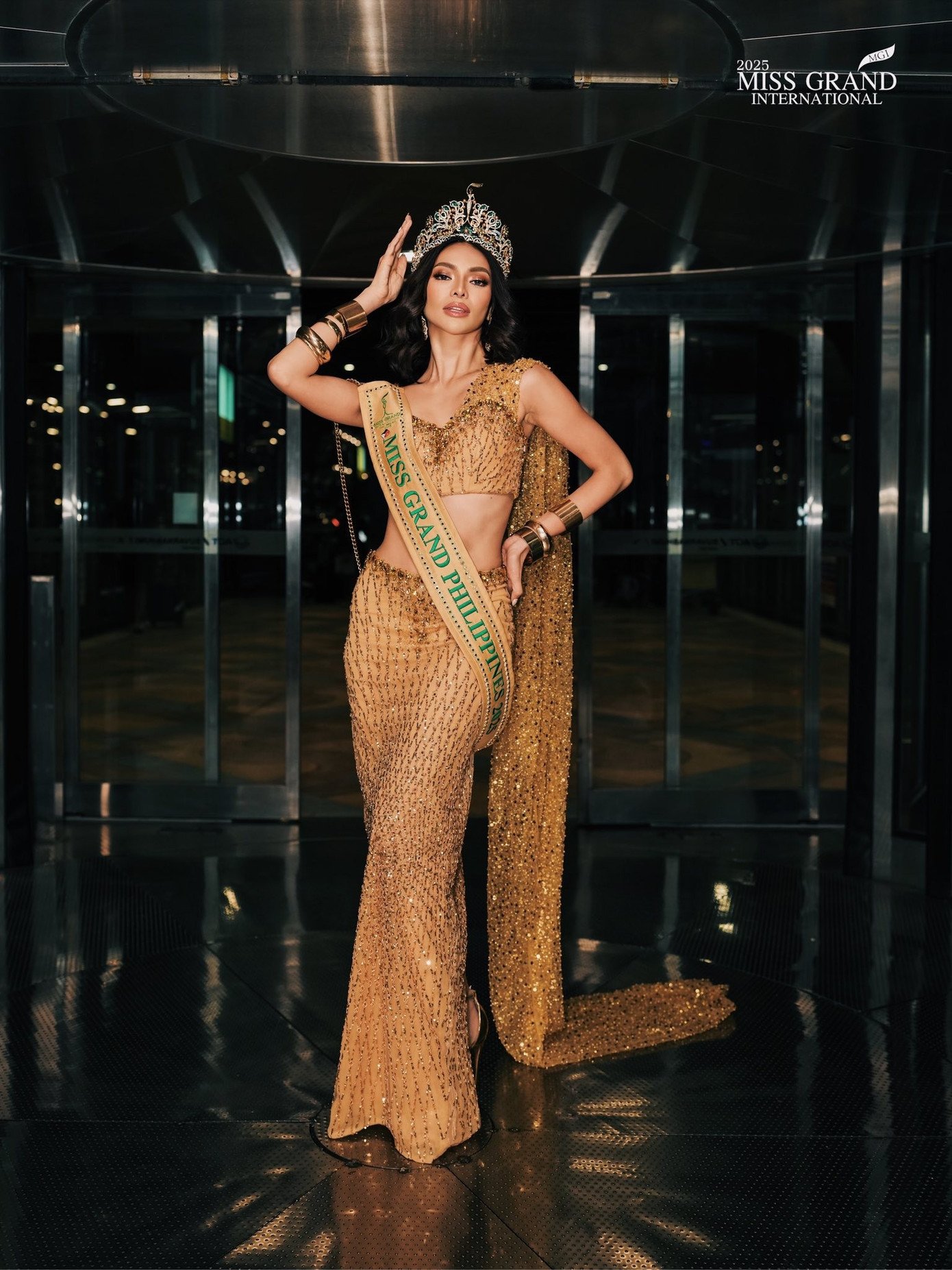 Bên cạnh đó, đương kim Hoa hậu Christine Juliane Opiaza cũng xuất hiện, đồng hành cùng thí sinh và chuẩn bị trao lại vương miện trong đêm chung kết ngày 18/10 tại Bangkok.
