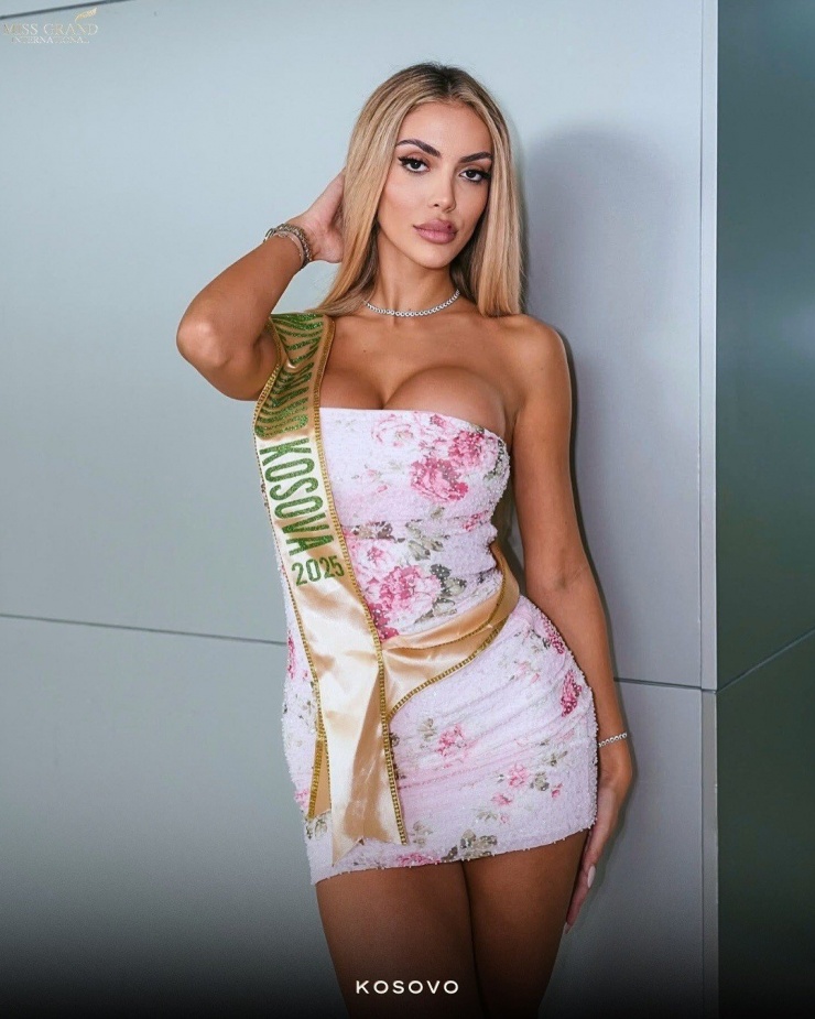 Kosovo – Brikena Selmani: Thiết kế cúp ngực phóng khoáng, khoe vòng một gợi cảm.