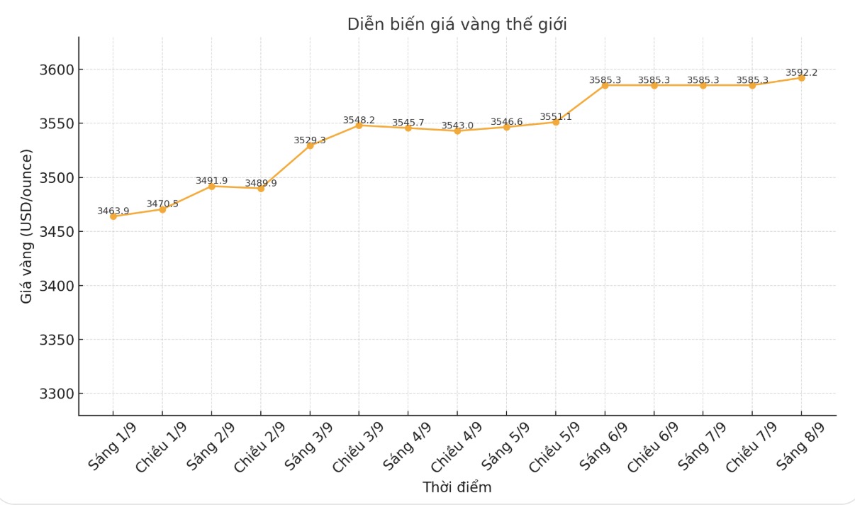 Giá vàng trong nước chững lại, bất chấp giá vàng thế giới lập đỉnh mới – vượt 3.600 USD/ounce vào chiều 8-9 (theo giờ Việt Nam). Đáng chú ý, giá vàng trong nước “bất động” sau chỉ đạo của Thủ tướng Chính phủ về yêu cầu Ngân hàng Nhà nước thực hiện các giải pháp, công cụ cần thiết để bình ổn thị trường vàng.