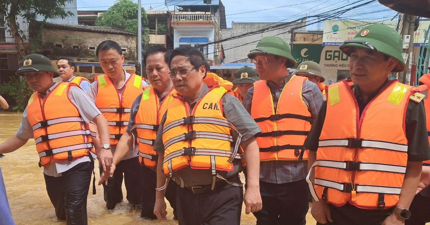 Tại hiện trường, người đứng đầu Chính phủ yêu cầu các lực lượng ưu tiên cứu người trước, khẩn trương hỗ trợ lương thực, nước sạch, áo phao cho người dân vùng bị cô lập. Ông cũng chỉ đạo Bộ Quốc phòng, Bộ Công an triển khai thêm lực lượng, phương tiện chuyên dụng để tiếp cận các điểm ngập sâu.